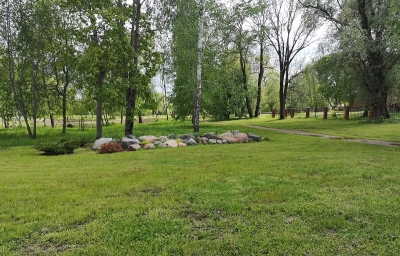Blakus Dobeles Romas katoļu Vissvētās Trīsvienības baznīcai, A.Bīlenšteina un Katoļu ielas stūrī
