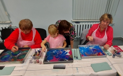 Aucē notika Ebru Latvija meistarklase jeb gleznošana uz ūdens 11.10.2022.