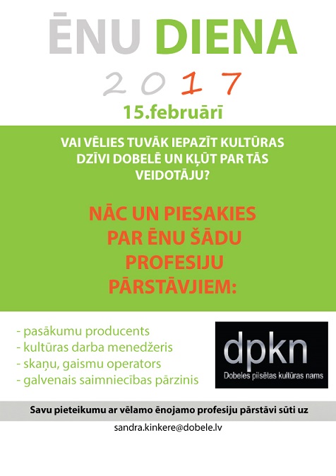 Dobeles pilsētas kultūras nams pieteikties ēnotājus