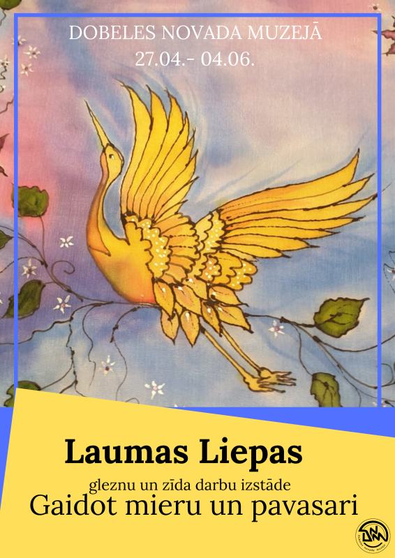 No 27.aprīļa Dobeles novada muzeja mazajā zālē būs skatāma dobelnieces Laumas Liepas gleznu un zīda darbu izstāde “Gaidot mieru un pavasari”.