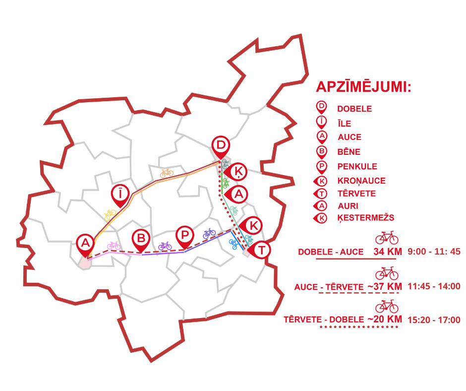 Dobele – Auce (34 km) no plkst. 9.00 – 11.45