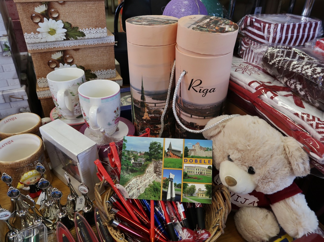 Veikals ceļotājiem un novada iedzīvotājiem piedāvā arī daudzveidīgus Latvijas un Dobeles suvenīrus.