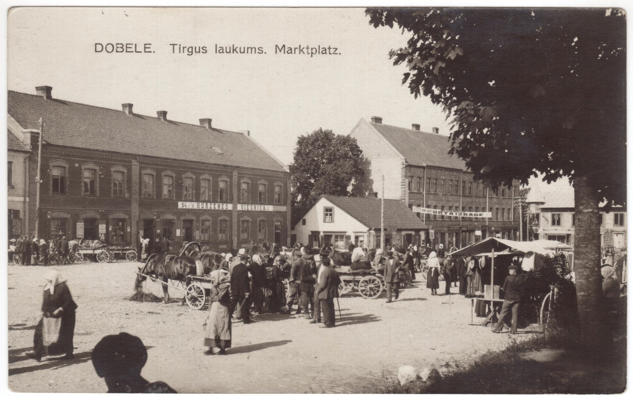 "Dobele ir maza. Jau pirmā vakarā ceļinieks paspēj to izstaigāt krustam-šķērsām. Un klusa viņa ir, sevišķi laikā no viena tirgus līdz otram. Gājēja soļi spalgi skan uz Dobeles akmeņiem, un retais pretimnācējs svešinieku ziņkārīgi aplūko no galvas līdz papēžiem, gan no priekšas, gan muguras. Tūrists te rets viesis, un, tādu putnu ieraudzījušas, savas jau tā lēnās slotas aptur arī tās pāris sieviņas, kas ar tirgus atlieku notīrīšanu nav tikušas galā vēl, vakaram tuvojoties."